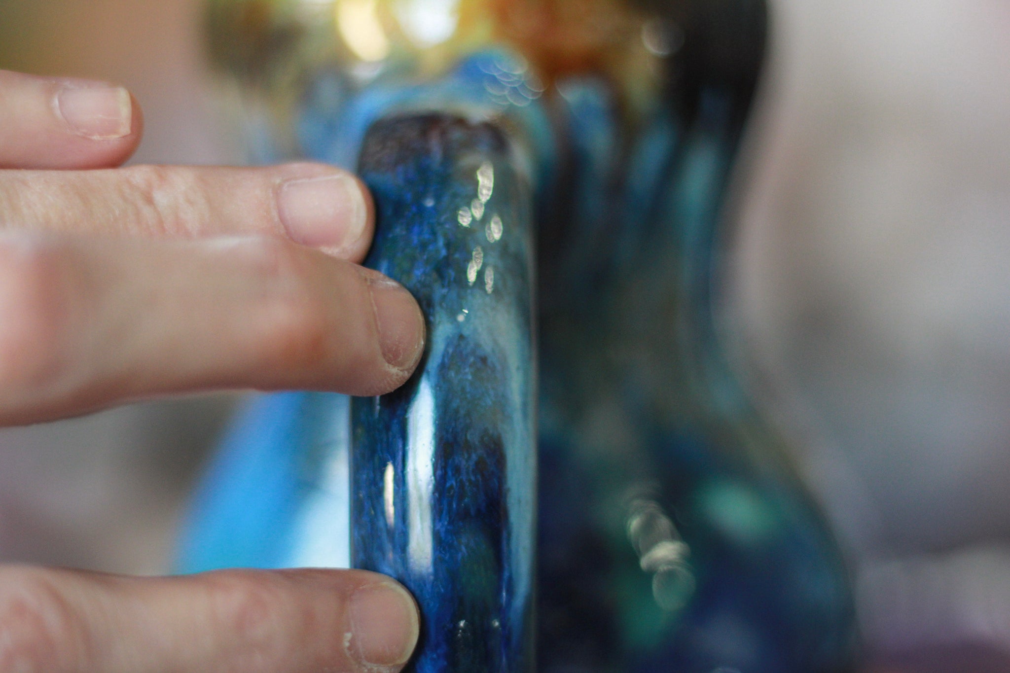 ~ These photos were taken with photo booth lighting next to a sunny window to highlight the glaze color and detail which will differ in normal indoor lighting.