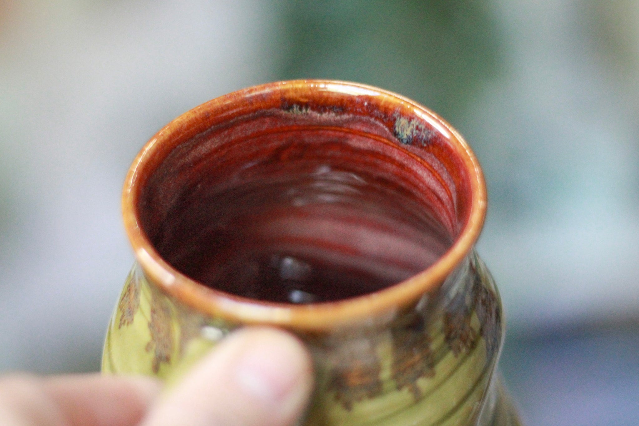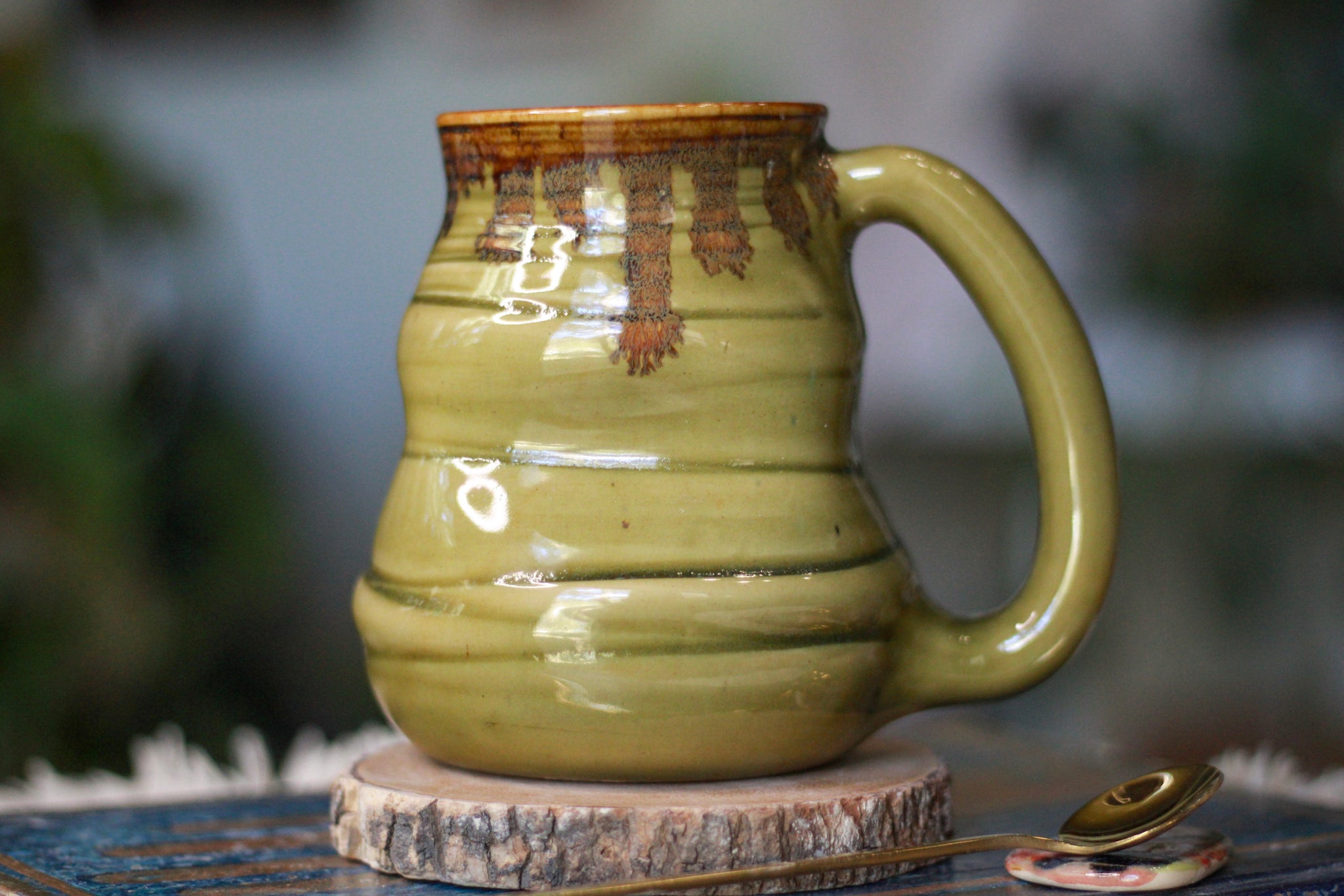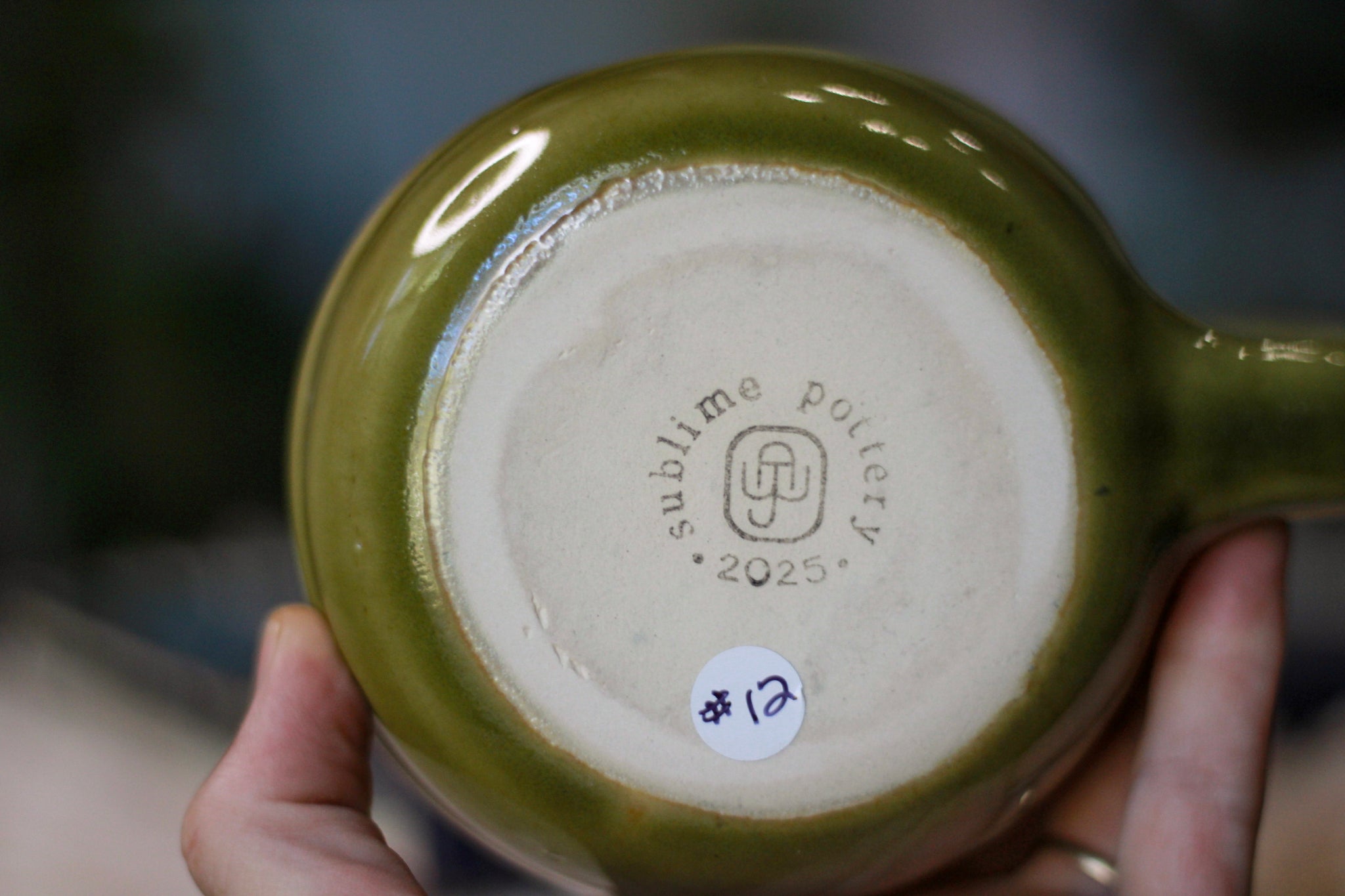 THE FEEL:   This simply glazed mug really is all about the feel of the mug.  I wanted to pare down the glazing and offer a simple, quickly glazed mug for those who aren’t as interested in the look as you are in the FEEL of its comforting heft, soothing divots & grooves and a deliciously cuppable base that feel comforting on the hands