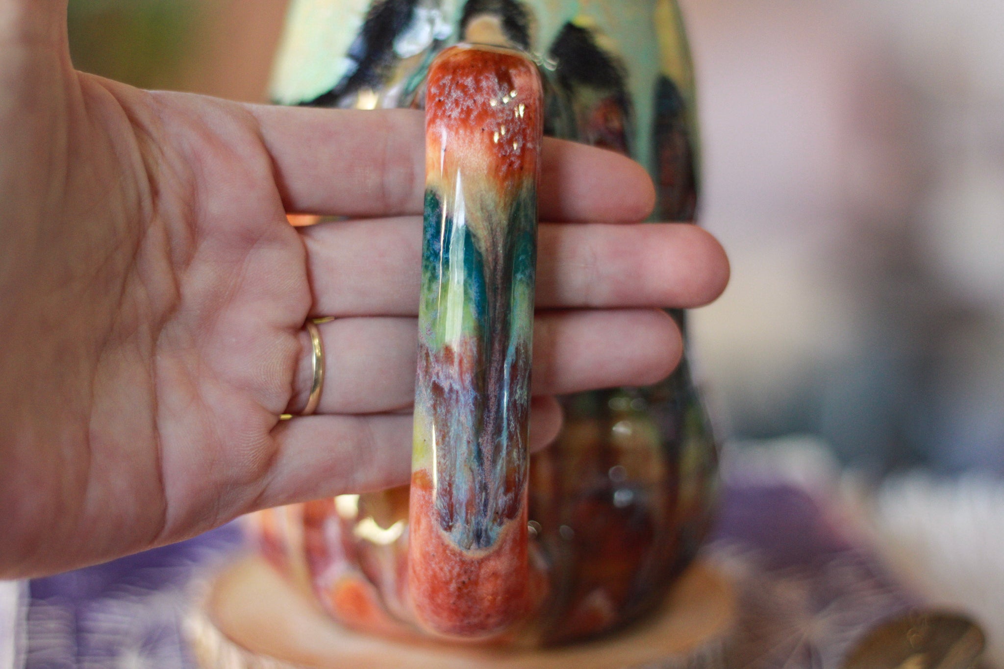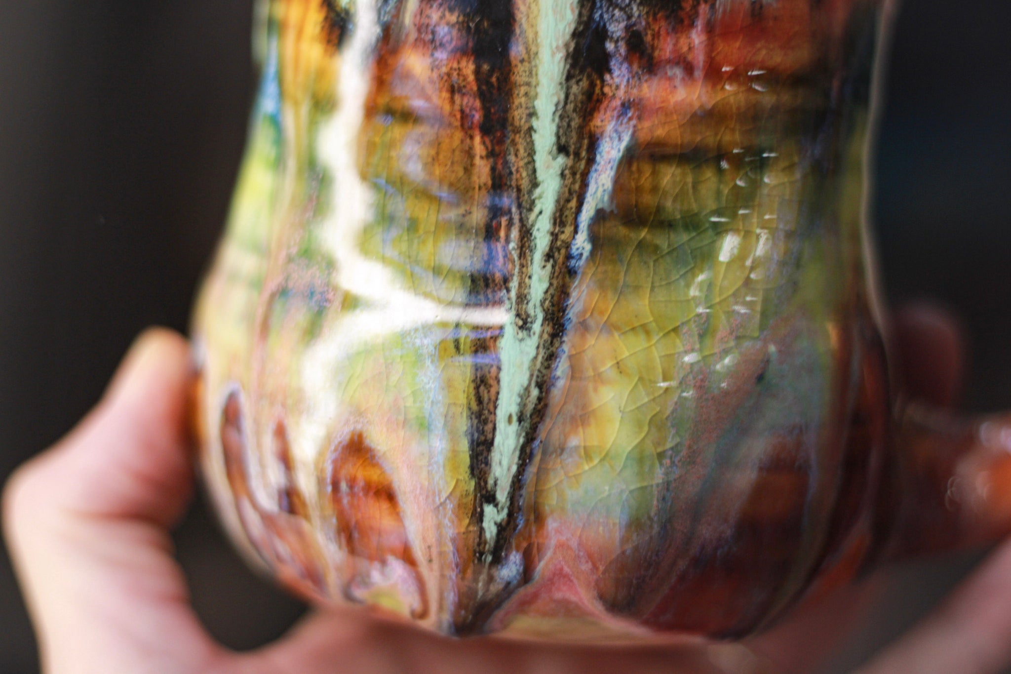 Note: Due to the nature of my multilayered glazing style, a subtle crackle effect may form in the exterior glazing of some pieces. Different pottery traditions put different values on this effect but the Eastern pottery tradition sees it as a sought after feature and not something to avoid. Like with Eastern teaware, this effect may evolve as your mug matures. This only occurs on the outside of the piece due to the varying overlapping glaze layers and does not affect its integrity.