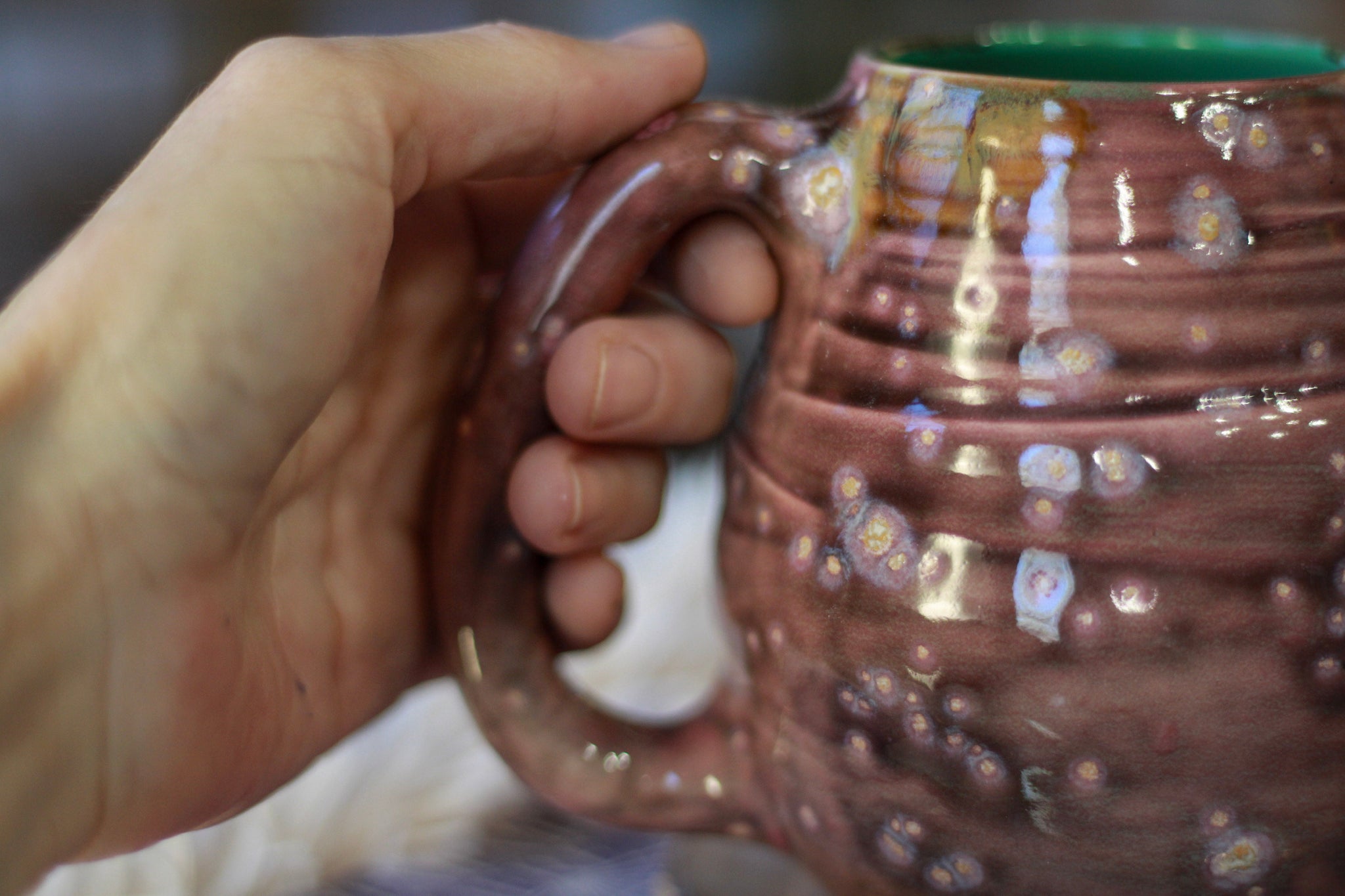 Although my pieces are dishwasher and microwave safe, I encourage treating these pieces like a well loved treasure that will be passed down by limiting microwave and dishwasher use. I have lost a few well loved and irreplaceable Renaissance festival mugs over the years that I’ve learned how to care for my own collection to help keep them with me to pass down to my son. I share the pottery care information in that spirit. I have a few of my own Sublime Pottery pieces that I’ve always microwaved and washed in the dishwasher that are all just fine but some of my pieces I treat like a treasure. I never microwave them or leave them soaking in water. I’ll warm them a bit with warm tap water if it’s a cold winter morning and the kitchen is chilly and I’ll hand wash, towel dry and put them away like my Granny did with her last remaining heirloom china tea cup. It feels special. Like I treated myself and now I’m giving some care to this thing that brings me joy.