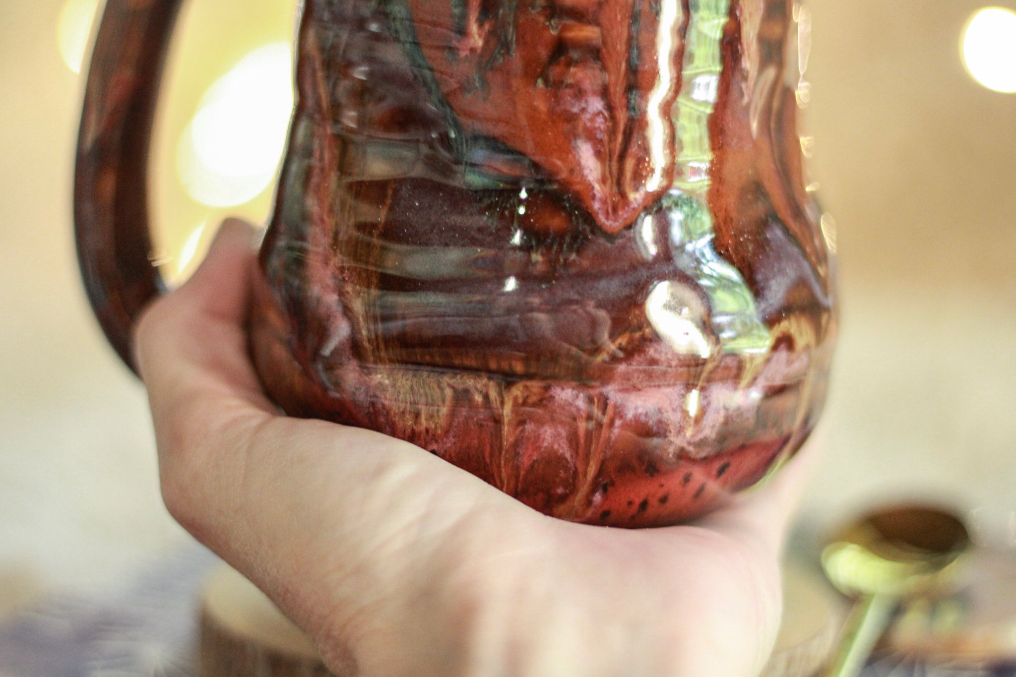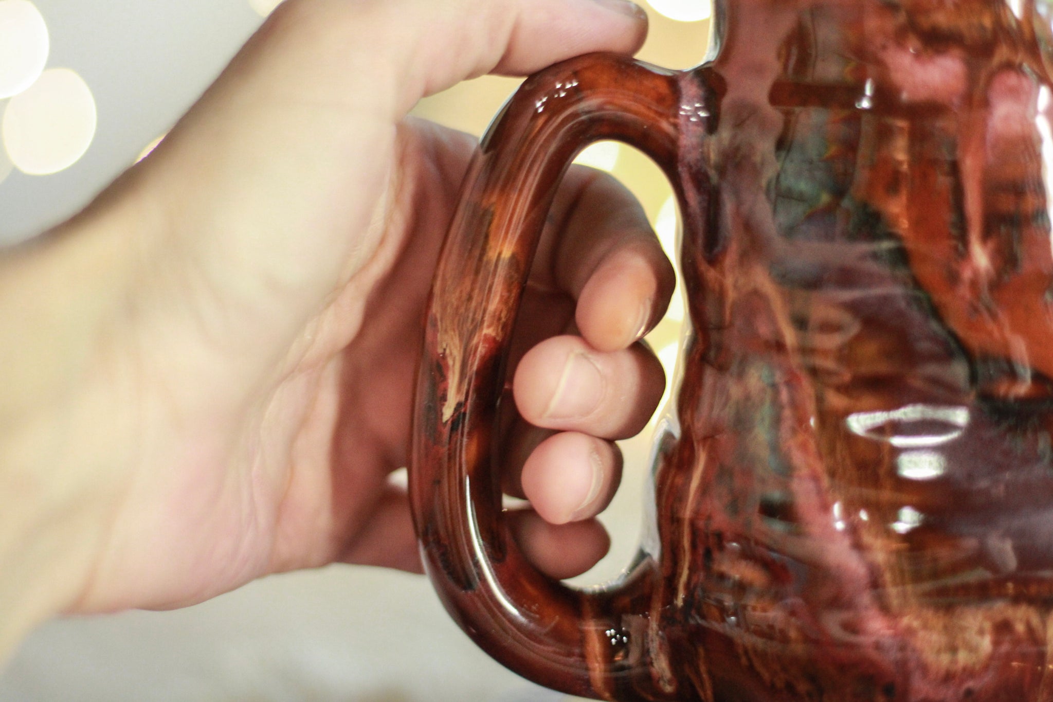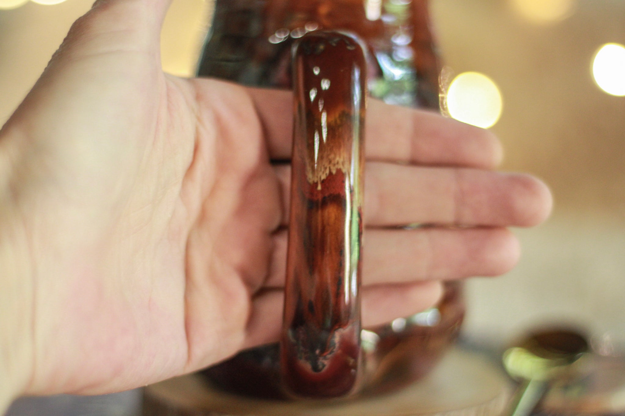 THE FEEL: This curvy mug is one of my favorites with its comfortingly grounding weight, a deliciously balanced 4 finger handle, soothing textures, cozy divots, and a smooth cuppable base.