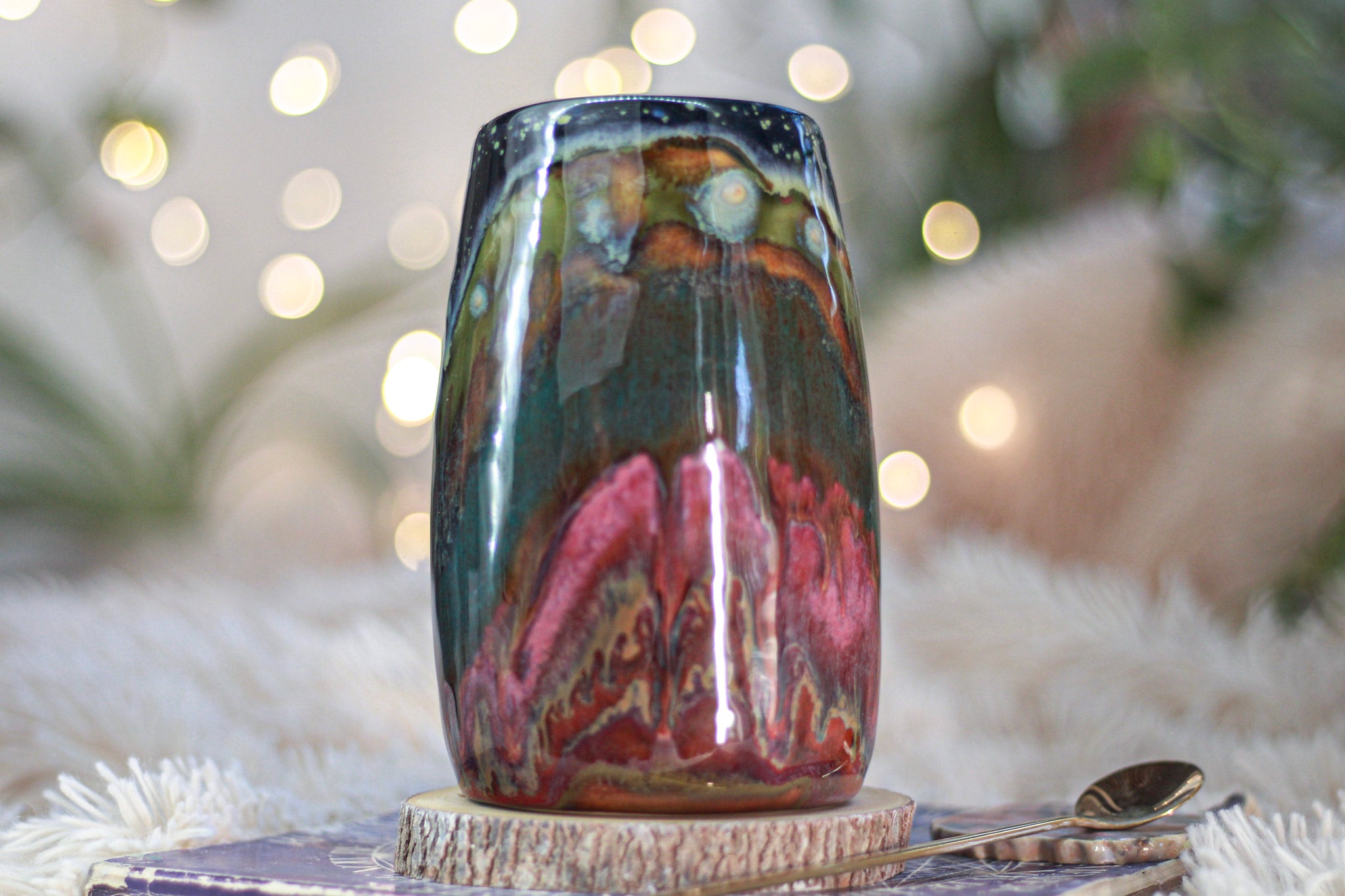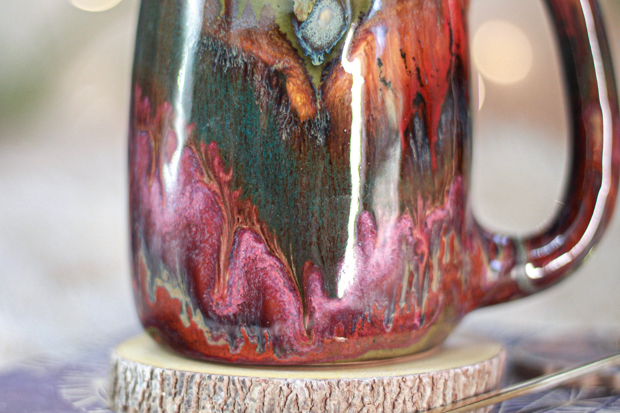 ~ These photos were taken with photo booth lighting next to a sunny window to highlight the glaze color and detail which will differ in normal indoor lighting.