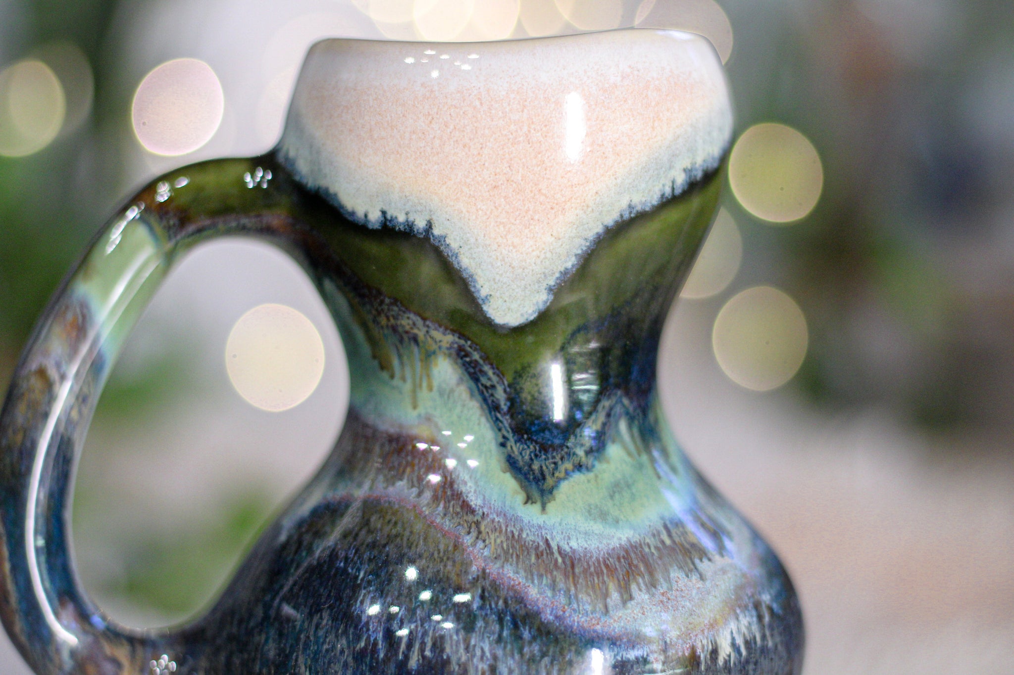 ~ These photos were taken with my studio lights on, next to a lightly shaded window on a sunny day to beautifully highlight the full spectrum of color in the glazes. Brightness will vary in different lighting conditions