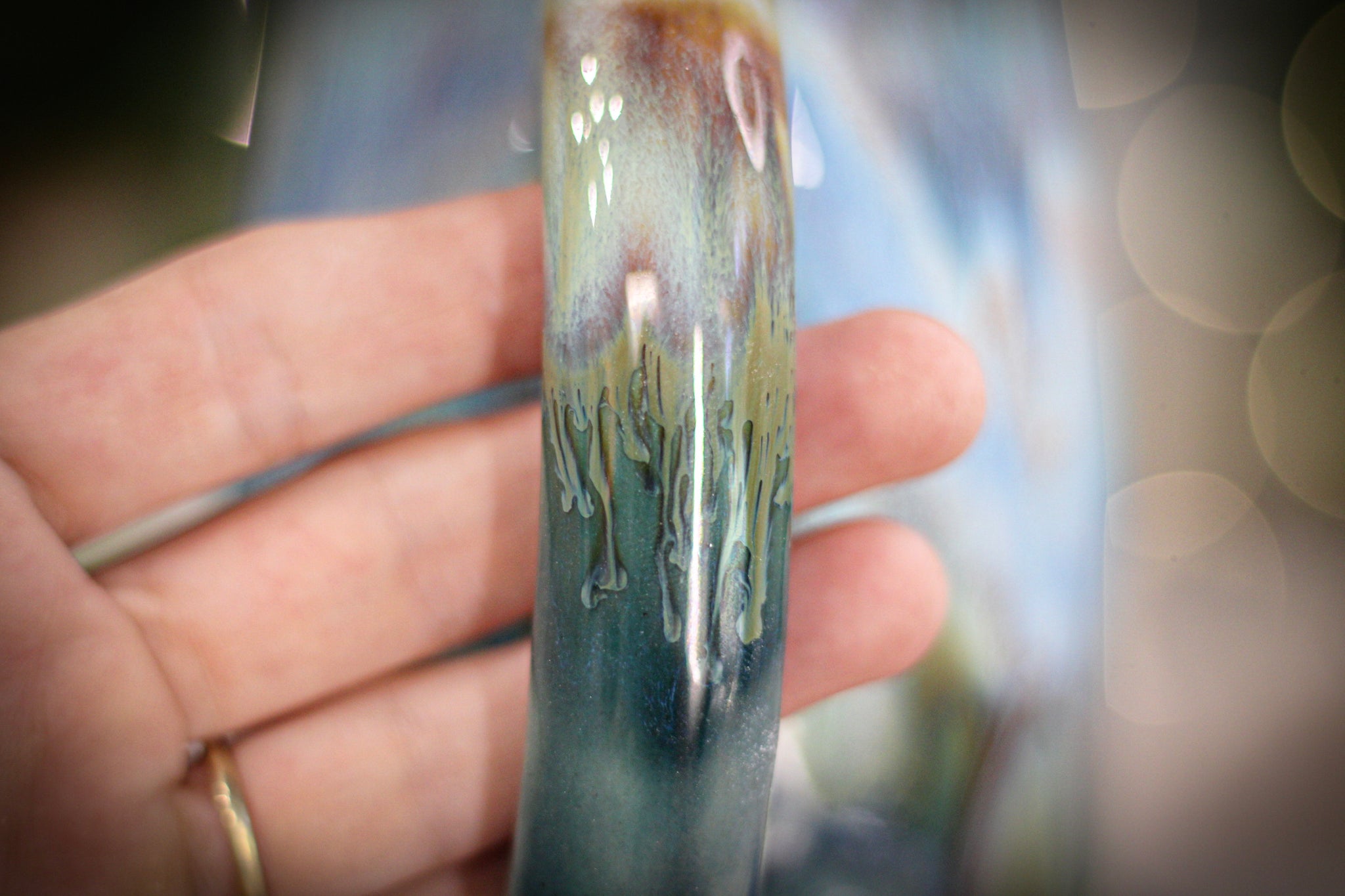 ~ These photos were taken next to a lightly shaded window on a sunny day to beautifully highlight the full spectrum of color in the glazes. Brightness will vary in different lighting conditions