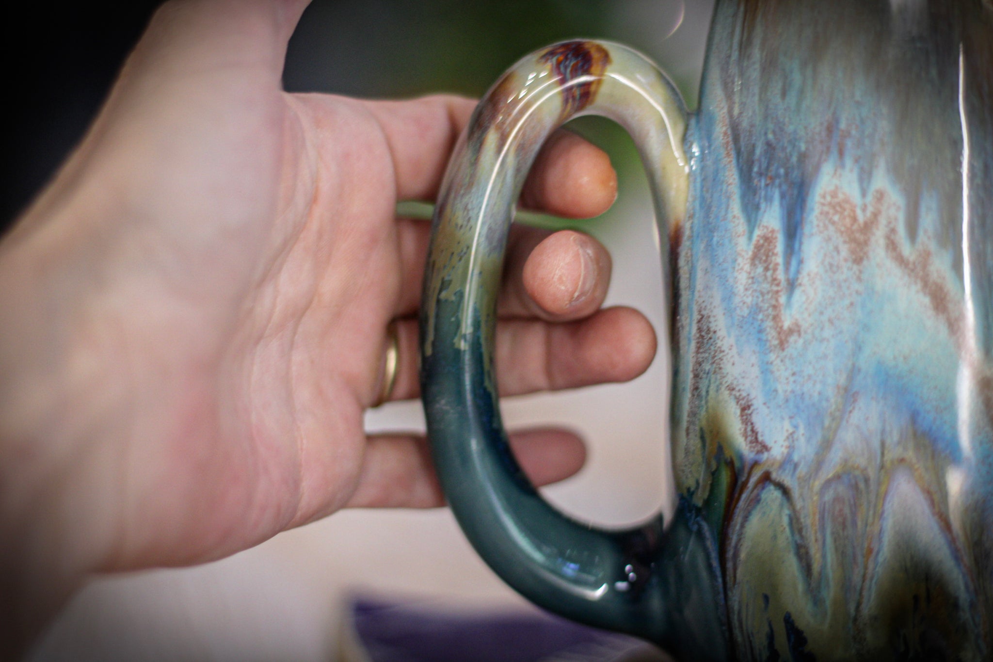 Although, technically, my pieces are dishwasher and microwave safe, we do not recommend it since they are works of art that should be treated with care. The following recommendations are encouraged for all handmade pottery. . Dishwasher use may increase the chances of chipping the rim. As with any handmade pottery, avoid leaving it in a sink of water, which will seep into any exposed clay. If a piece that has water in it is microwaved, it may crack. Although it is a rare occurrence, ceramics can fracture from thermal shock. To avoid this possibility, fill your cup or mug with hot tap water as you are heating your tea water to warm the mug before adding boiling water. If handled properly, these pieces are intended to last many lifetimes, like treasured family heirlooms. We recommend hand washing your pieces and avoiding the microwave.